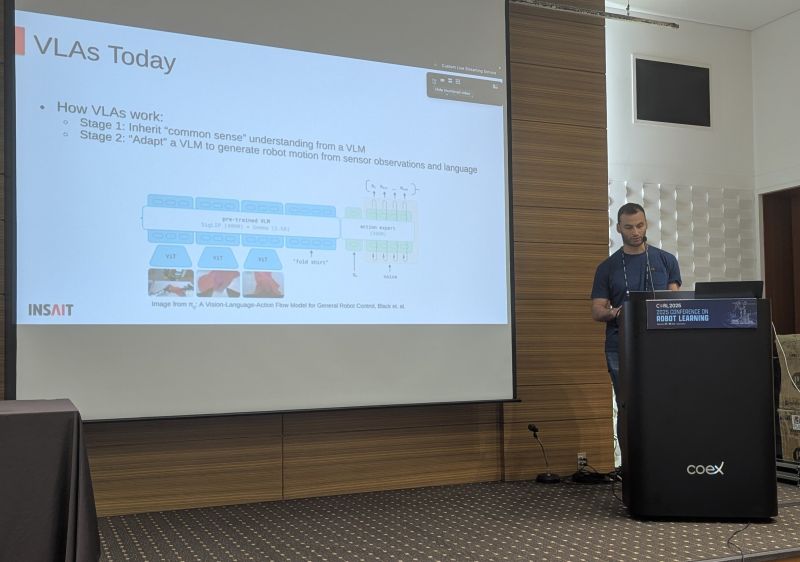 Екип на INSAIT, институт към Софийския университет „Св. Климент Охридски“, постигна огромен успех като се класира сред едва двата екипа, одобрени за участие в RoboArena – международно предизвикателство за оценка на най-новите AI модели за роботика. Събитието бе организирано от учени от Станфордския университет, Калифорнийския университет – Бъркли и други водещи институции, и се проведе в рамките на конференцията CoRL 2025 в Сеул.