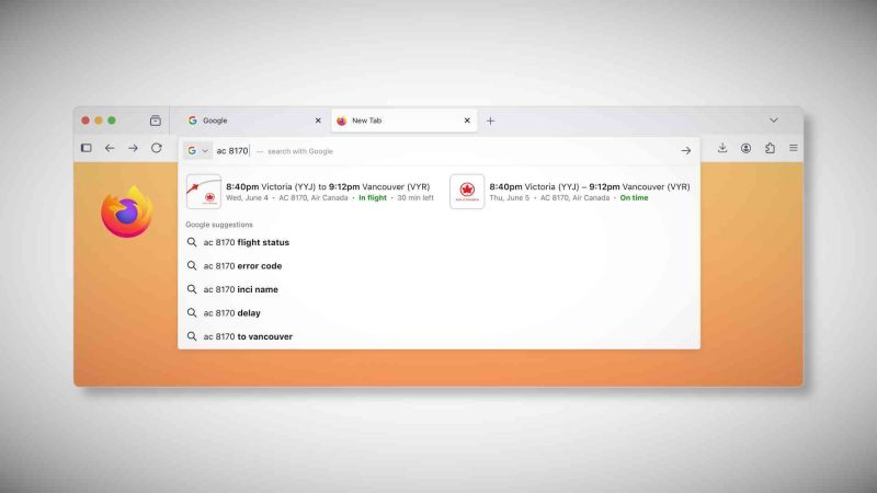 Mozilla цитира няколко примера за типа резултати, които ще се появяват директно в адресната лента. Един интересен пример са обобщенията за състоянието на полетите, които според компанията са по-удобни, когато се показват вградени, вместо да се препращат потребителите към страницата с пълните резултати от търсенето.